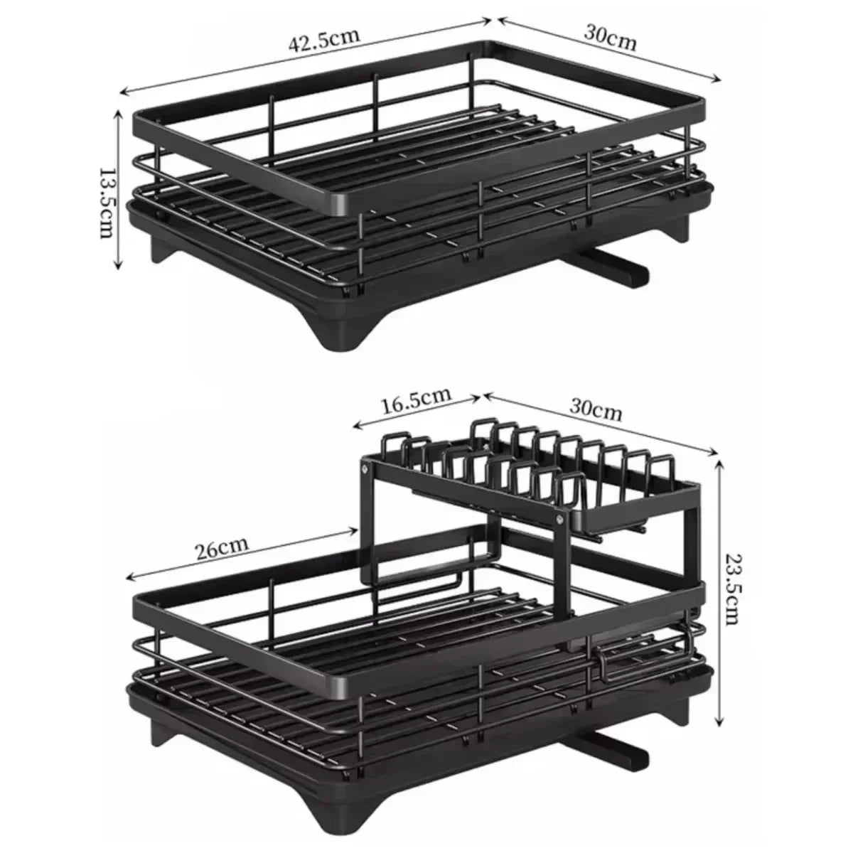 Organize your kitchen with this durable and anti-rust dish rack! Its integrated design provides reasonable zones for cutlery, chopsticks, and plates. The detachable upper layer provides additional space for larger items.